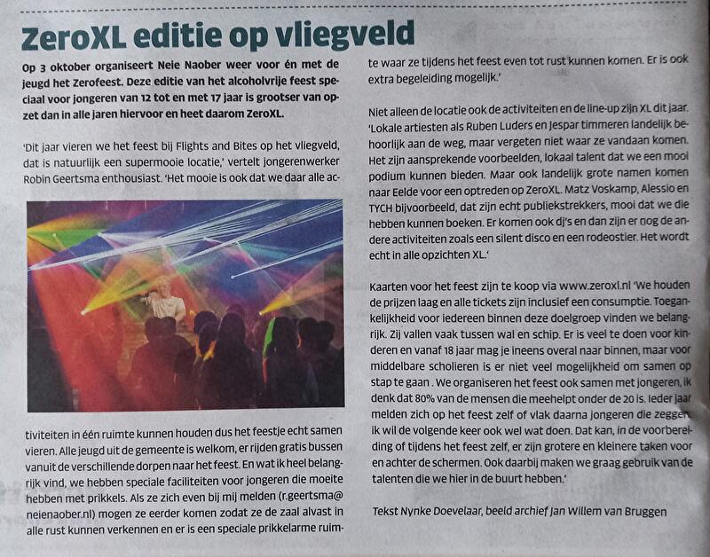 Ook de Eelder Dorpsklanken besteedde vorige week al aandacht aan ZERO XL (zie bijgevoegde foto.)
